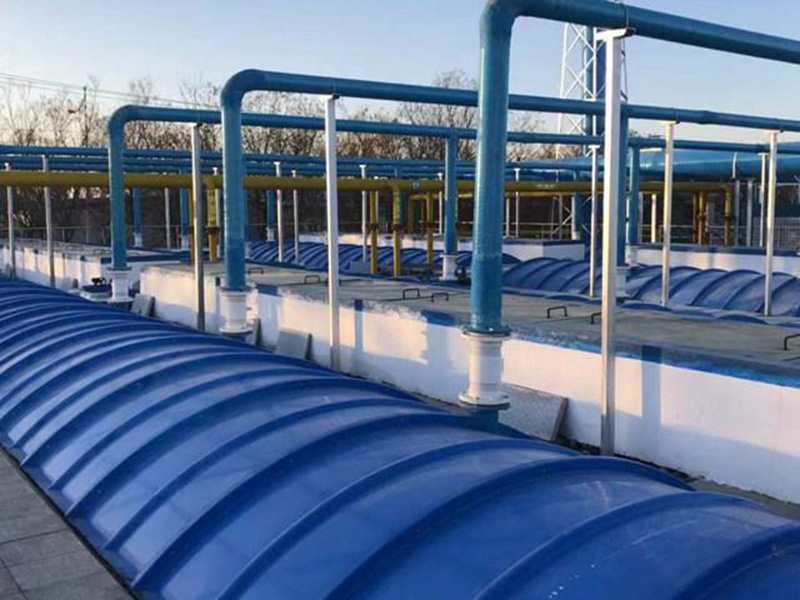用于污水池和氧化溝的密封,防止臭氣散發(fā)。在蓋板上設(shè)排氣口,將臭氣用管道引出至除 臭設(shè)備。